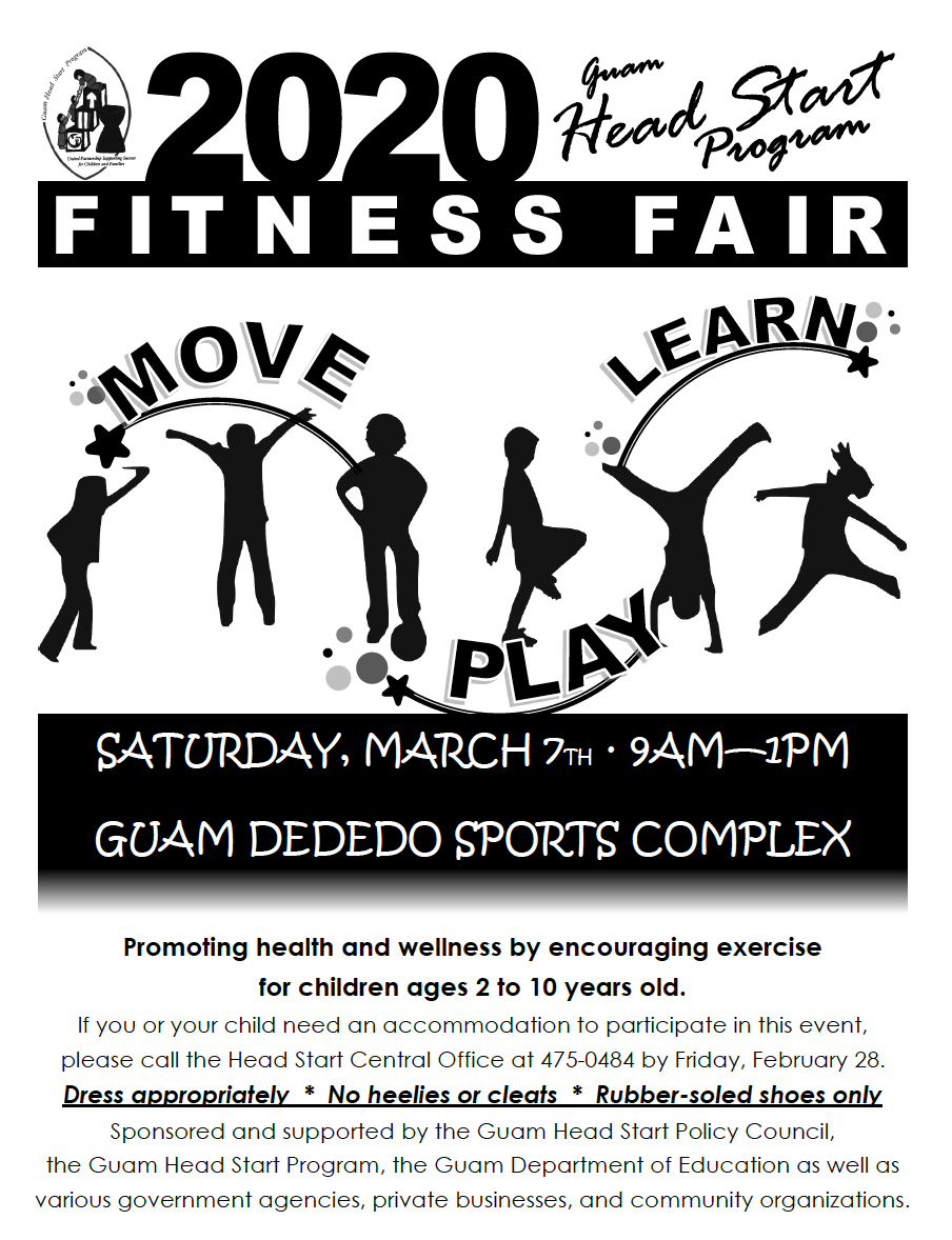 Come join the Guam Head Start Program as we MOVE, LEARN and PLAY!  Help us promote health and wellness by encouraging exercise for children ages 2 to 10 years old.